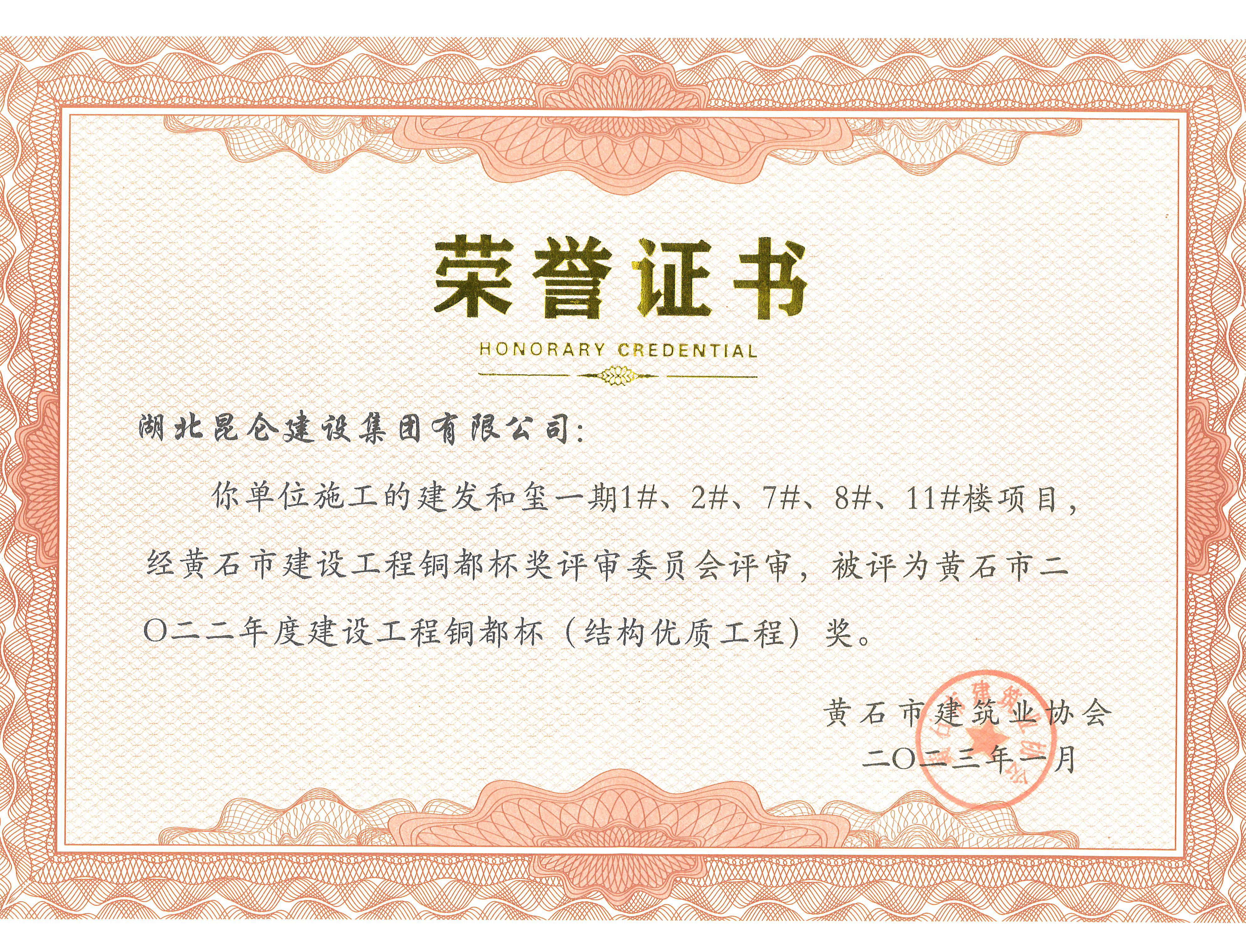 • 建發(fā)集團2022年度優(yōu)秀施工獎